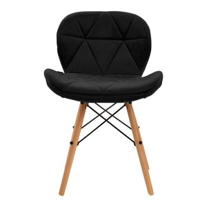 Der Sitz ist mit einer Polsterung aus angenehm anzufassendem Samt in Schwarztönen bezogen. Dies verleiht ihm ein exklusives Aussehen und sorgt für Bedienkomfort. Sorgfältige Nähte in geometrischen Formen sind ein eleganter Stil, und der Metallrahmen, der die Beine in Schwarztönen verbindet, verleiht den Möbeln Stabilität. Die hölzernen, matt lackierten Beine sind mit Kunststoffschutz versehen, der zusätzlich vor versehentlichen Beschädigungen schützt. Ein Stuhl im skandinavischen Stil ist ein bequemes Möbelstück, das zur Dekoration des Empfangs eines jeden Schönheitssalons wird.