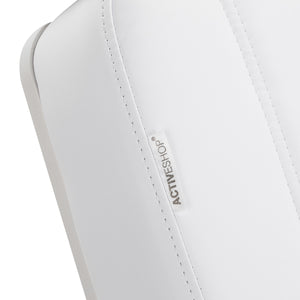 The solid construction of the chair ensures stability and durability during daily use. The seat, filled with foam of the appropriately selected hardness, guarantees comfort even during long procedures. The upholstery made of high-quality, pleasant-to-the-touch imitation leather in shades of white gives the chair a professional look, while being moisture-resistant and easy to clean. The durable base ensures stability, and the precise finishes emphasize the modern character of the chair and enhance seat ergonomics.