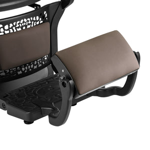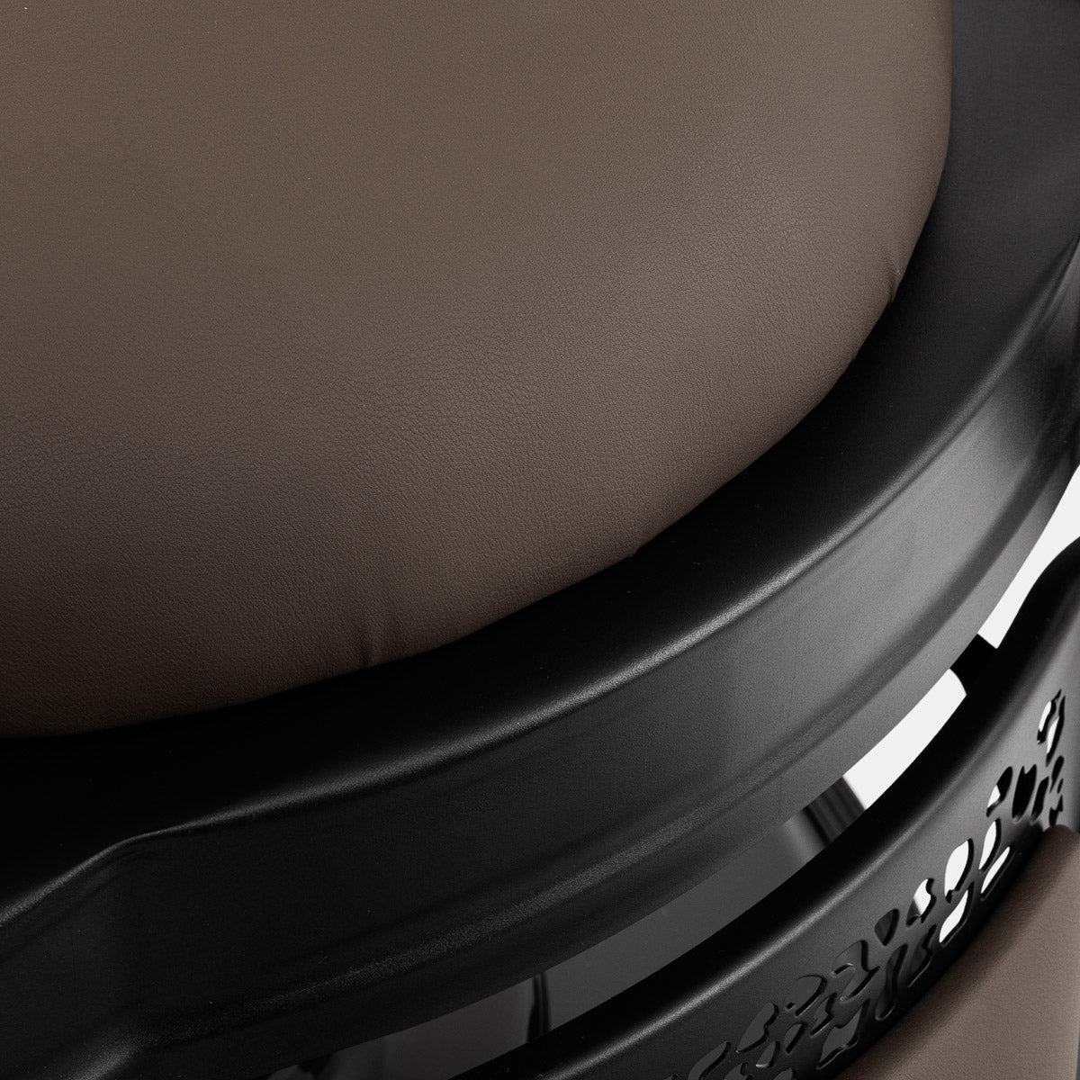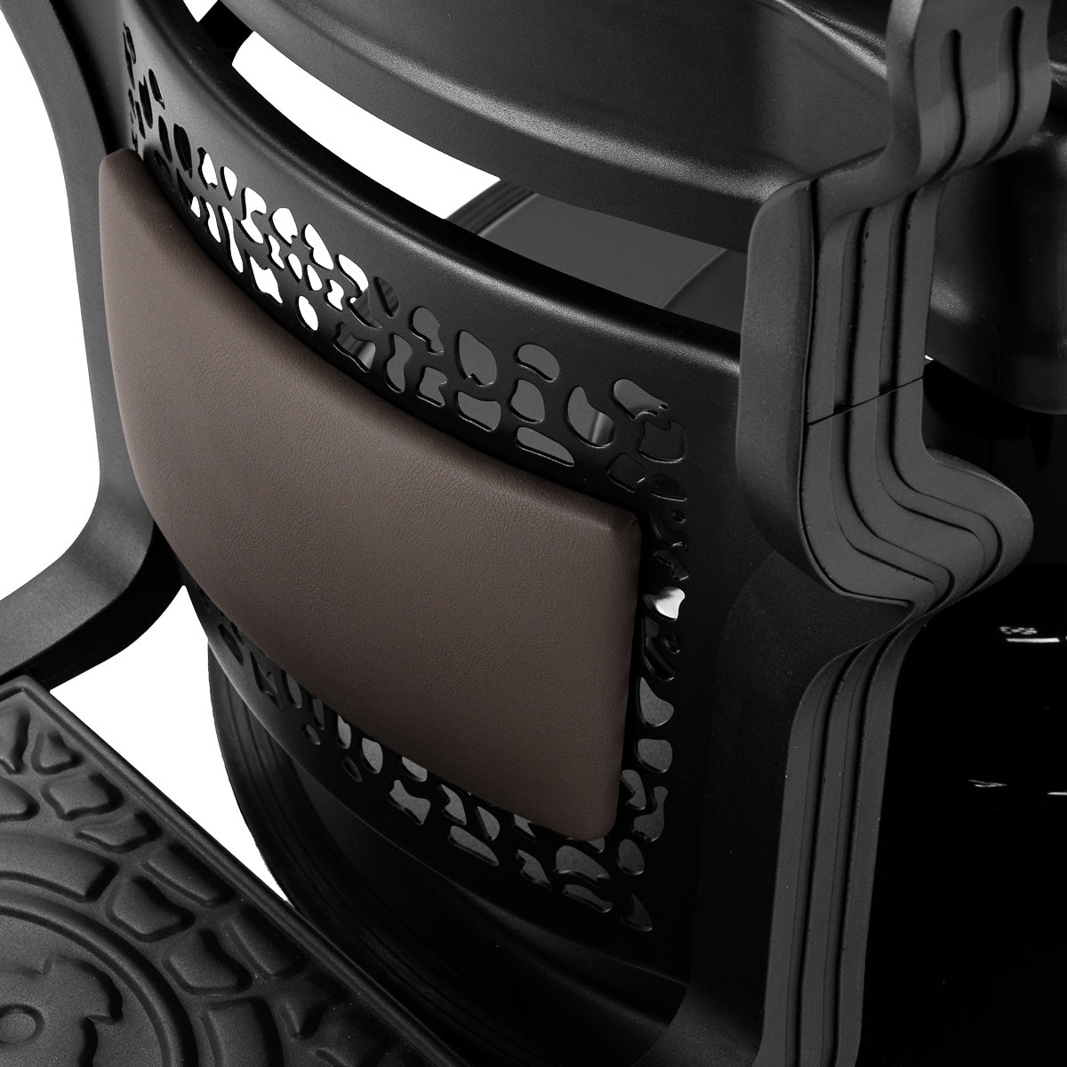 Ein bequemer, mit Schaumstoff gefüllter Sitz garantiert dem Kunden Komfort bei verschiedenen Dienstleistungen. Die konturierte Rückenlehne ermöglicht eine komfortable Position und bietet eine hervorragende Rückenstütze, was besonders bei längeren Behandlungen wichtig ist. Die Ausstattung des Stuhls mit einem Vollrotationsmechanismus macht die Arbeit effektiver und komfortabler. Die gepolsterten Armlehnen, die in der richtigen Höhe platziert sind, ermöglichen eine korrekte Positionierung der Schultern des Kunden – dies verhindert, dass der Kunde seinen Kopf in die Schultern vergräbt oder sich krümmt – was präzise Behandlungen erheblich erleichtert. Der Handtuchhalter unter der Armlehne beeinflusst die Effizienz der Arbeit erheblich. Der Spalt zwischen Rückenlehne und Sitz erleichtert die Reinigung des Salons, da er eine effiziente Entfernung von Haaren aus allen Ecken und Winkeln des Stuhls ermöglicht und die Vorbereitung des Arbeitsplatzes für die nächsten Kunden beschleunigt.