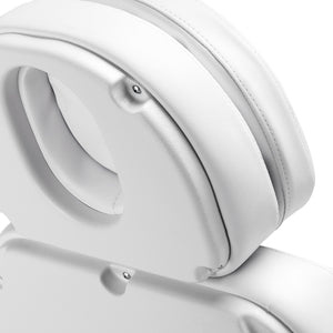 Kosmetikliege ist mit profiliertem Schaumstoff gefüllt und mit Kunstleder in Weißtönen bezogen, das sich angenehm anfühlt. Durch das verwendete Material sind die Geräte leicht zu reinigen und resistent gegen Feuchtigkeit und ausgewählte Desinfektionsmittel. Die stabile Basis aus strapazierfähigem Material in Weißtönen sorgt für Stabilität während der Behandlungen. Die richtig profilierte Polsterung verleiht dem Stuhl ein stilvolles Aussehen und macht den Sitz ergonomisch. Minimalistisches, schlichtes Design und klassische Farben sorgen dafür, dass es in jedes Interieur passt.