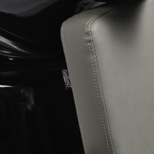 Ein minimalistischer Stuhl mit einer charakteristisch abgerundeten Sitzfläche verbindet die Einfachheit der Form mit hohem Bedienkomfort. Die Rückenlehne mit optimalem Neigungswinkel unterstützt die natürliche Haltung des Körpers. Die Polsterung aus hochwertigem Kunstleder in Grautönen ist abriebfest und leicht zu reinigen. Die moderne Linie der Möbel unterstreicht den eleganten Charakter der Waschanlage und fügt sich perfekt in die Einrichtung des Salons ein. Komplette Armaturen mit mattem Finish in Schwarztönen sind im Lieferumfang enthalten, darunter ein Wasserhahn, ein Duschkopf und spezielle Schläuche, um ein komplettes Set an Werkzeugen für die Arbeit zu gewährleisten.