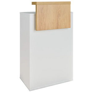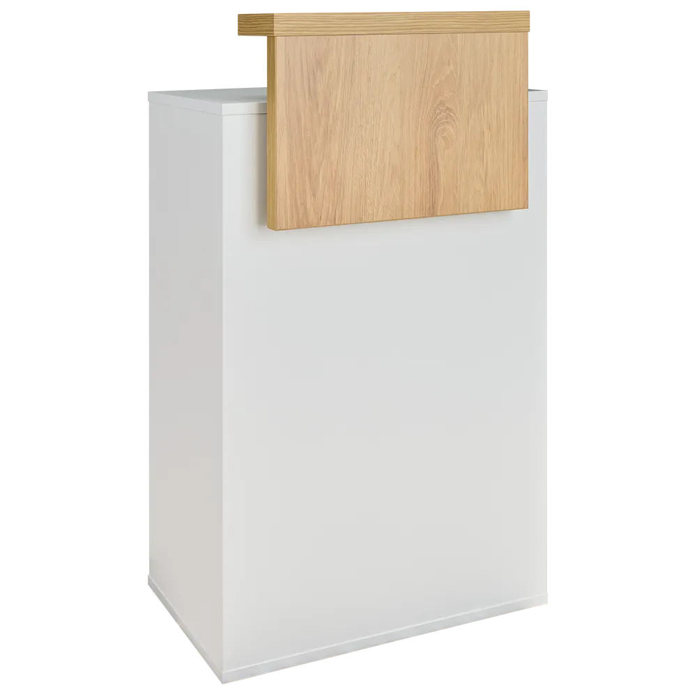 TINA is the most popular mini reception desk in our range, designed for hair and beauty salons. It’s simple, timeless form fits perfectly into Scandinavian interiors as well as more classic or modern spaces. This compact piece offers four practical open shelves to hold all essential accessories. Made of durable laminated board – available immediately in a white and dark wenge combination, and on order in any décor from our collection. Body made of white laminated board