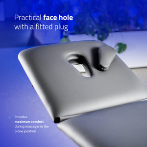 Face hole plug: allows you to quickly adjust the headrest for comfortable lying on your back or side.