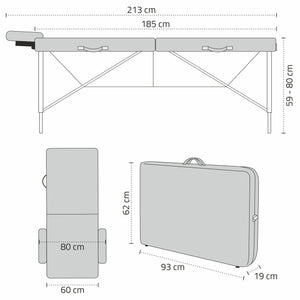 Nadia je univerzalni sklopivi stol za masažu s aluminijskom konstrukcijom, potpuno opremljen navlakom i dodatnim priborom. Model ima dvodijelnu ploču s udobnom pjenom debljine 5 cm, koja se sastoji od dva sloja različite tvrdoće. Prvi je mekan debljine 4 cm, a drugi je nešto tvrđi debljine 1 cm. To čini stol ne samo izuzetno udobnim za pacijenta, već i udobnim za terapeuta.