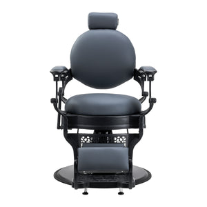 A szilárd alapkonstrukció stabilitást és magas használati kényelmet biztosít. A tartós, deformációnak ellenálló habból készült üléskitöltés és a matt felületű, kellemes tapintású műbőrből készült kárpit hosszú távú tartósságot és kényelmes használatot biztosít a bútornak. A felhasznált anyagok emellett nedvességállóvá, tartóssá és könnyen tisztíthatóvá teszik a felszerelést. A grafit árnyalatú huzat a díszített lábtartóval együtt egyedi karaktert kölcsönöz neki. A szék, jellegzetes kialakításával, amely a vintage stílusra utal, tökéletesen illeszkedik a borbélyszalonok hangulatába, fokozva azok egyedi atmoszféráját.