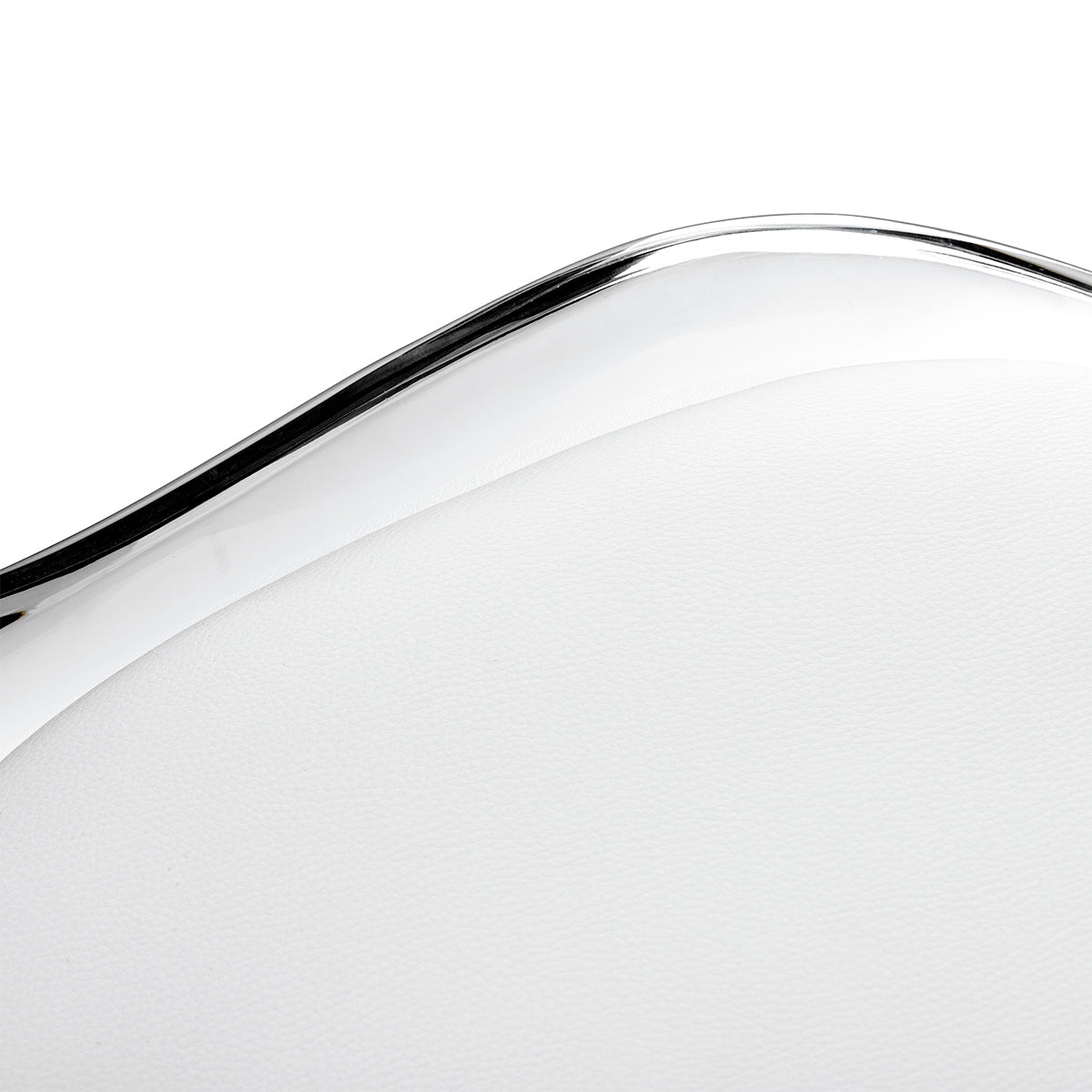 A modell feltűnő, átlátszó háttámlájával ragadja meg a tekintetet, könnyed és modern karaktert kölcsönözve az egésznek. Az átlátszó szerkezet és a fehér műbőrrel kárpitozott ülőpárna, valamint a fehér alap kombinációja kifinomult kontrasztot teremt, amely kiemeli az eleganciát. Ezáltal a szék nemcsak funkcionális bútordarab, hanem stílusos dísze is az irodának. Tökéletesen illeszkedik bármely belső térbe, kiválóan harmonizálva a kortárs szépségszalonok esztétikájával.