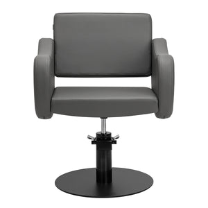 A Gabbiano Sewilla fodrászszék minimalista dizájnt ötvöz a mindennapi használat kényelmével. A stabil, kerek alap matt fekete színben elegáns megjelenést kölcsönöz neki, míg a habszivacs párnázat és a puha tapintású műbőr szürke árnyalatokban, matt felülettel magas kényelmet biztosít. A felhasznált anyagok tartósak, nedvességállóak és könnyen tisztíthatók. Tökéletesen illeszkedik mind a modern, mind a klasszikus belső terekbe, kiemelve a belső tér professzionális stílusát.