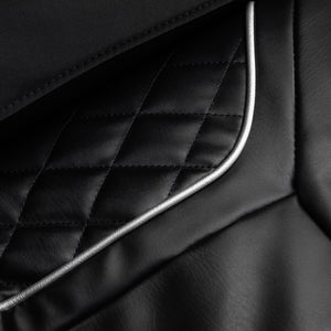 A fekete árnyalatú puha műbőr kivételes kényelmet és könnyű tisztíthatóságot biztosít. Ez az anyag nemcsak esztétikus, hanem ellenáll a nedvességnek is, ami növeli a funkcionalitását. Az ezüst színű külső elemek a fekete tónusú strukturált felülettel kombinálva modern, stílusos megjelenést kölcsönöznek a fotelnek. A kompakt forma és a visszafogott színek révén a modell harmonikusan illeszkedik a különböző belső terekbe. A Sakura Prime 108 kiváló választás azok számára, akik mindennapi pihenésre vágynak – különösen egy intenzív nap vagy megerőltető fizikai erőfeszítés után.