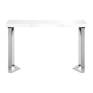 The modern form of the desk, combining a white top with silver, geometric legs, adds lightness and elegance to the interior. Thanks to its compact, yet stylish form, the desk will work perfectly in both small salons and larger, modern interiors.