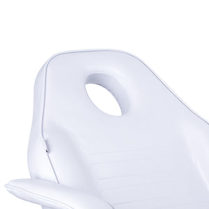 The height of the seat can be adjusted in the range of 62-75 cm hands-free using a hydraulic pump. This allows for comfortable use of the equipment for people of different heights and allows it to be adapted to the individual needs of both the client and the person performing the procedure. The mechanism used is very durable and reliable. Thanks to the hole in the headrest hidden under a properly profiled cushion, the chair will also be perfect for treatments carried out on the back, such as massages or tattoos.