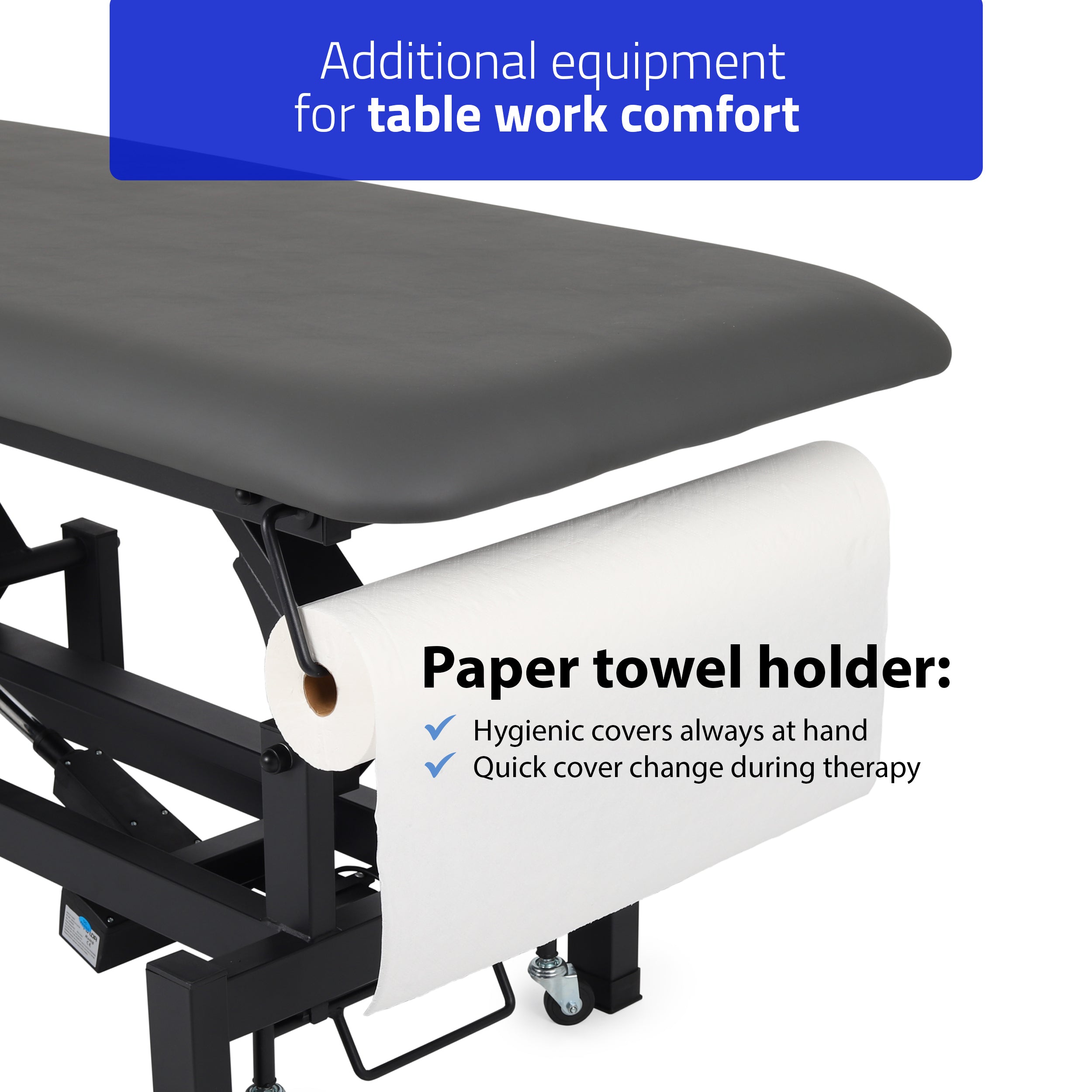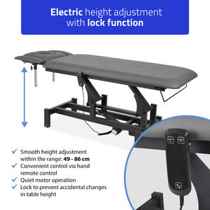 Electric height adjustment: The Fortis 4 ERGO table is equipped with a quiet, certified electric actuator that allows for precise height adjustment from 49 cm to 86 cm, ensuring therapist comfort and patient convenience.