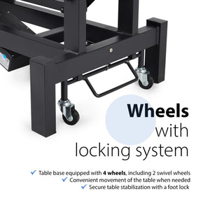 Mobility system with lock: The table is equipped with 4 castors, including 2 swivel castors, which facilitate its smooth movement.