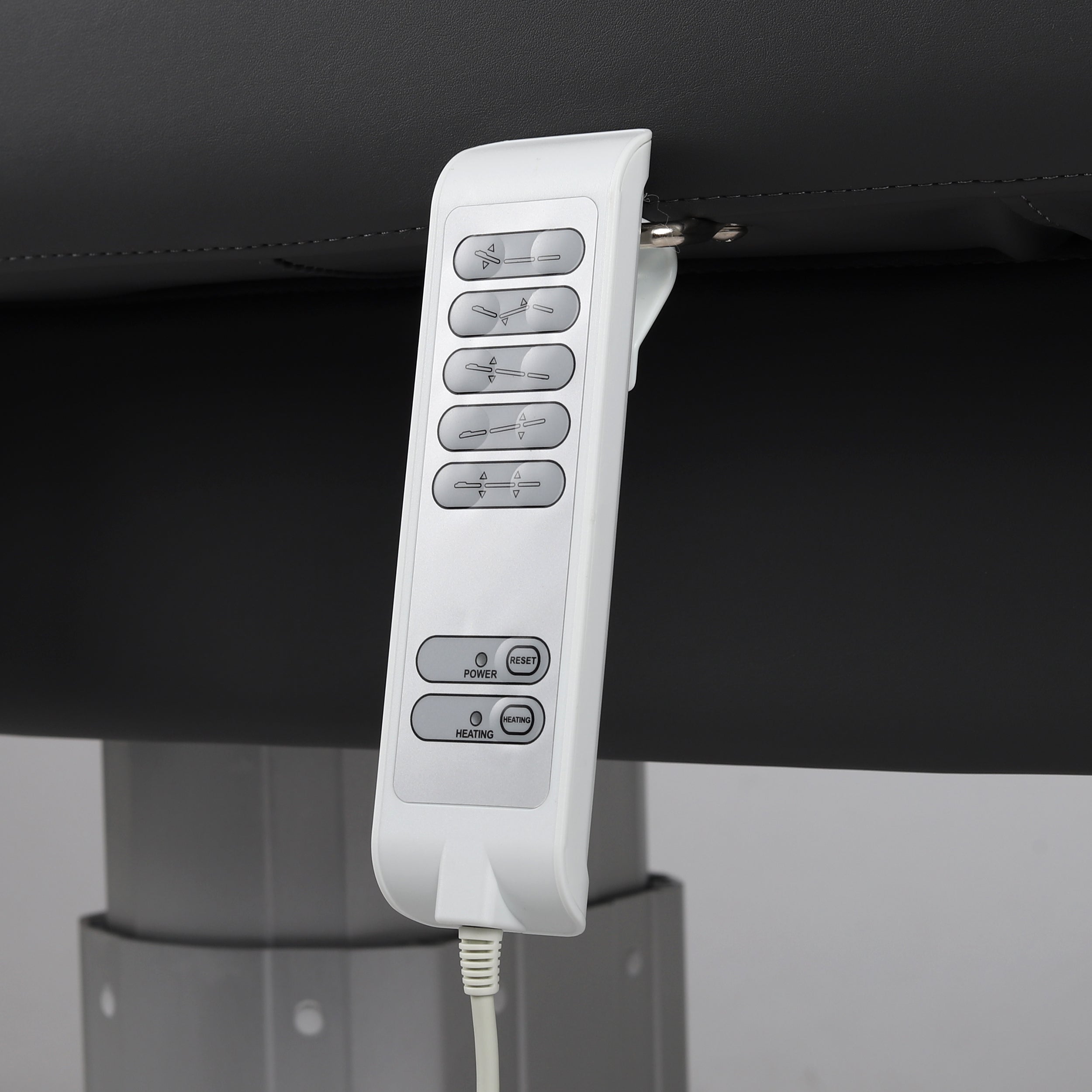 The table's bed heats up gradually. After approx. 10-15 minutes of turning on the heating function on the remote, the surface of the tabletop will heat up to a temperature of approx. 45℃. After reaching the programmed temperature, the heating function will automatically turn off. The heating system will stop automatically if there is no operation on the table for an hour.