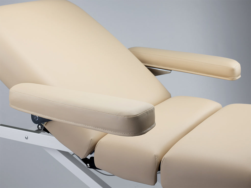 The table features a 3-section top controlled by a remote, allowing for any positioning of the client's entire body. The table is ideal for both massage and beauty salons. Linea V3 has an exceptionally stable construction and a comfortable top equipped with armrests that automatically adjust their position to the position of the bed.