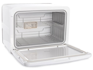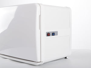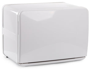 Professional towel warmer, equipped with a UV sterilization lamp and an integrated drip tray. Perfect for massage parlors, beauty salons, and spas. Its small size and minimalist white casing with rounded shapes will fit into any space, even a small one.