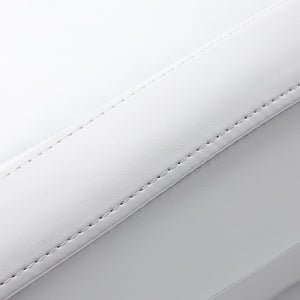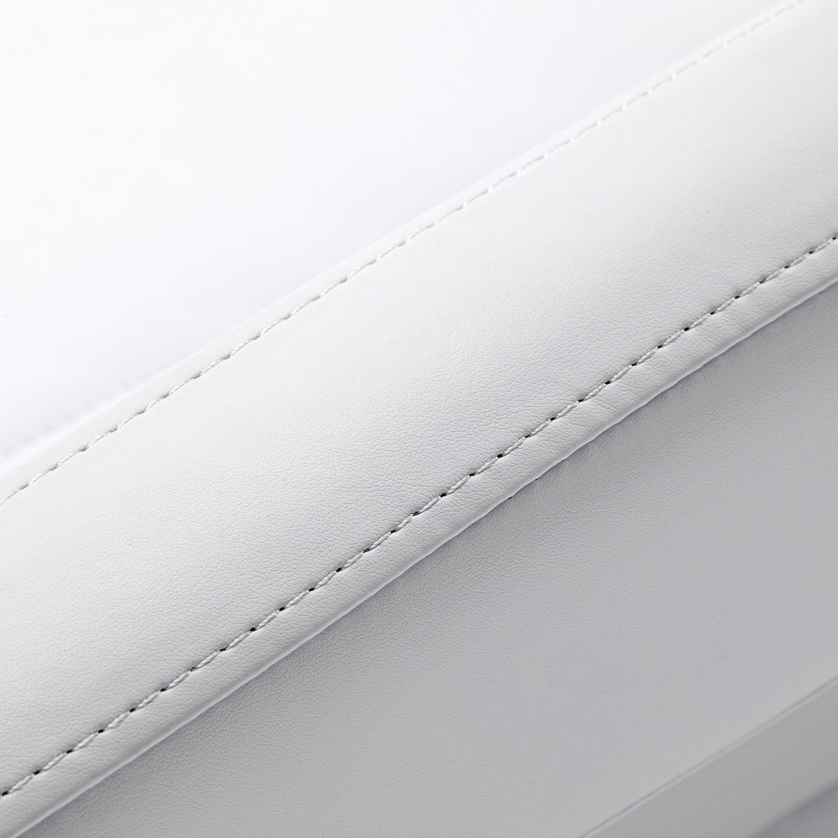 Die solide Konstruktion des Stuhls sorgt für Stabilität und Langlebigkeit im Alltag. Der Sitz ist mit Schaumstoff in entsprechend ausgewählter Härte gefüllt und garantiert Komfort auch bei Langzeitbehandlungen. Die Polsterung aus hochwertigem, angenehm anzufassendem Kunstleder in Weißtönen verleiht dem Ganzen einen professionellen Look, ist gleichzeitig feuchtigkeitsbeständig und leicht zu reinigen. Das langlebige Untergestell garantiert Stabilität, und die präzisen Oberflächen betonen den modernen Charakter des Stuhls und erhöhen die Ergonomie des Sitzes.