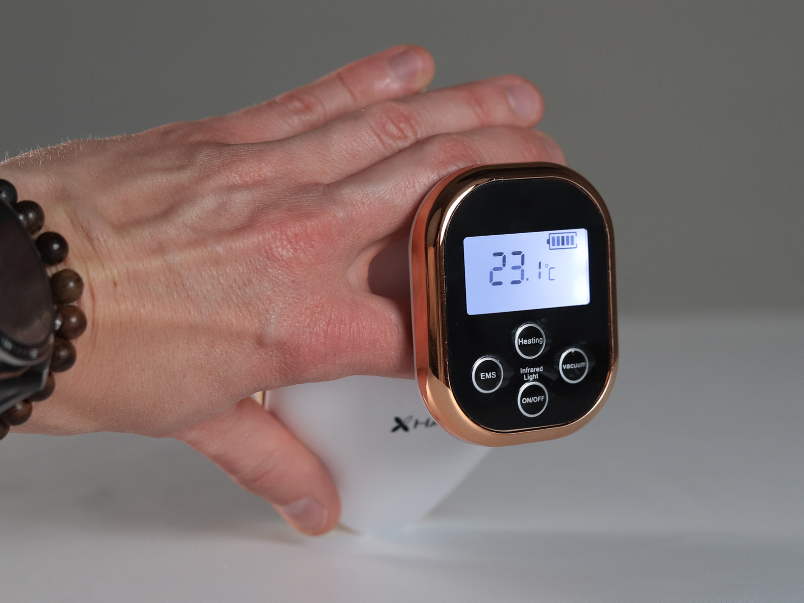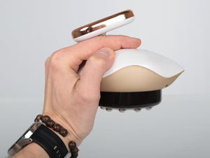 The Simple cupping device has an LCD display that allows you to control the device's operating level, suction level, and temperature. The heating function accelerates the effects of the massage, and the red light, which replaces an open flame, stimulates skin cells, encouraging them to maintain a youthful state. The EMS function, responsible for electrical impulse stimulation, gently stimulates acupuncture points and peripheral sensory nerves. This reduces inflammation and swelling, and also has a relaxing and rejuvenating effect on the skin.