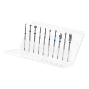 Ein professionelles Set von Diamantschneidern besteht aus hochwertigsten Materialien zum Reinigen, Glätten und Formen von Nagelhaut und Seitenwellen um den Nagel herum. Fräser sind besonders nützlich bei der Vorbereitung von Nägeln für die kombinierte Maniküre. Wir können sie auch verwenden, um Verdickungen an der Nagelplatte zu entfernen oder dem Nagel Form zu geben und Hybridlacke, Gele, Acryl zu entfernen, ohne die Nagelplatte zu beschädigen.