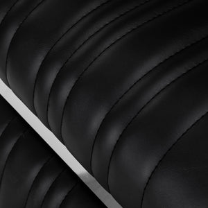 The stable base provides secure support and high comfort of use. The seat is filled with deformation-resistant foam and upholstered with semi-matt synthetic leather, guaranteeing durability and comfort for a long time. The materials are distinguished by their resistance to moisture and ease of cleaning. The black upholstery combined with metal chrome elements and a decorative footrest give the chair a distinctive, classic character. Vertical stitching emphasises the vintage style, which fits perfectly into the atmosphere of professional barbershops. Carefully refined details give the whole a representative look, and the functional design promotes comfortable and effective work.