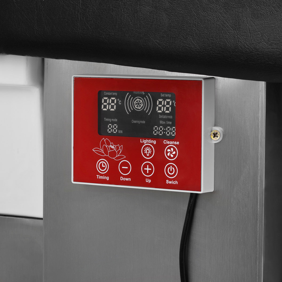Das intuitive Touchpanel bietet die volle Kontrolle über die Funktionen der Waschanlage. Es ermöglicht Ihnen, die Betriebszeit und die Temperatur des Wassers einzustellen sowie deren aktuelle Werte zu überwachen. Dank des eingebauten Displays können Sie jederzeit sehen, wie lange das Gerät schon läuft. Das Panel ermöglicht es Ihnen auch, die Hintergrundbeleuchtung der Schüssel einzuschalten und so eine Atmosphäre der Entspannung und des Luxus zu schaffen. Darüber hinaus ist das Dampftherapiegerät mit einer Fernbedienung für eine komfortable Fernbedienung ausgestattet.