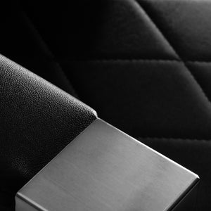 Die solide Konstruktion des runden Standfußes sorgt für Stabilität und hohen Bedienkomfort. Die Sitzfüllung aus verformungsbeständigem Schaumstoff und die Polsterung aus angenehm anzufassendem Kunstleder mit mattem Finish garantieren die Langlebigkeit des Möbels und seine komfortable Nutzung für lange Zeit. Stilvolle Nähte an den Polstern verleihen dem Sitz Charakter, der an automobiles Design erinnert und sein elegantes Erscheinungsbild unterstreicht. Außerdem machen sie die Geräte feuchtigkeitsbeständig, langlebig und leicht zu reinigen. Die schwarze Abdeckung verleiht ihm einen einzigartigen Charakter, und der minimalistische Stil ermöglicht es, dass er sich in die Einrichtung jedes Friseursalons einfügt.