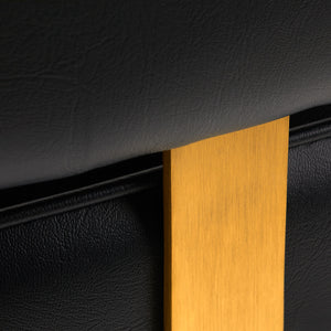 Das komfortable Möbelstück ist mit strapazierfähigem, verformungsbeständigem Schaumstoff gefüllt, während die Polsterung aus angenehm anzufassendem Kunstleder besteht. Die verwendeten Materialien sorgen für eine komfortable Nutzung der Möbel über einen langen Zeitraum und machen die Geräte feuchtigkeitsbeständig, langlebig und leicht zu reinigen. Der Bezug in Schwarztönen und dekorative Elemente in Goldtönen verleihen ihm einen Ausdruck zeitloser Eleganz. Der Friseurstuhl B212G zeichnet sich durch ein minimalistisches Design aus, das ihm einen einzigartigen Charakter verleiht und den Stuhl in vielen eleganten Salons großartig aussehen lässt.