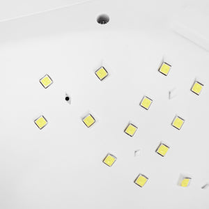 Die professionelle UV/LED-Lampe der neuesten Generation, die dank der Verwendung von Dual-LED-Technologie Gele, Hybrid-Nagellacke und andere lichthärtenden Präparate schnell und gleichmäßig verhärtet. Sie strahlt weißes Licht aus, das Ihre Augen nicht ermüdet. Die Lampe SUN 5 verfügt über eine energiesparende Lichtquelle mit einer hohen Leistung und einem Dual-Wellenlängenbereich von 365nm und 405nm. 24 Dioden ergeben eine maximale Gesamtleistung von 48W. Die Lampe verfügt über einen eingebauten Bewegungssensor, Timer 10, 30, 60 und 99 Sekunden. Wenn der Sensor aktiviert ist, leuchtet die Lampe bis zu 120 Sekunden lang kontinuierlich. Der 99 Sekunden lange „Low Heat Mode“ ist ein Modus, bei dem die Lampenleistung alle 30 Sekunden allmählich ansteigt. Er beseitigt das Gefühl von Brennen beim Auftragen der Aufbau-Gele. Eine große elektronische Anzeige sorgt für einfache Zeitkontrolle.