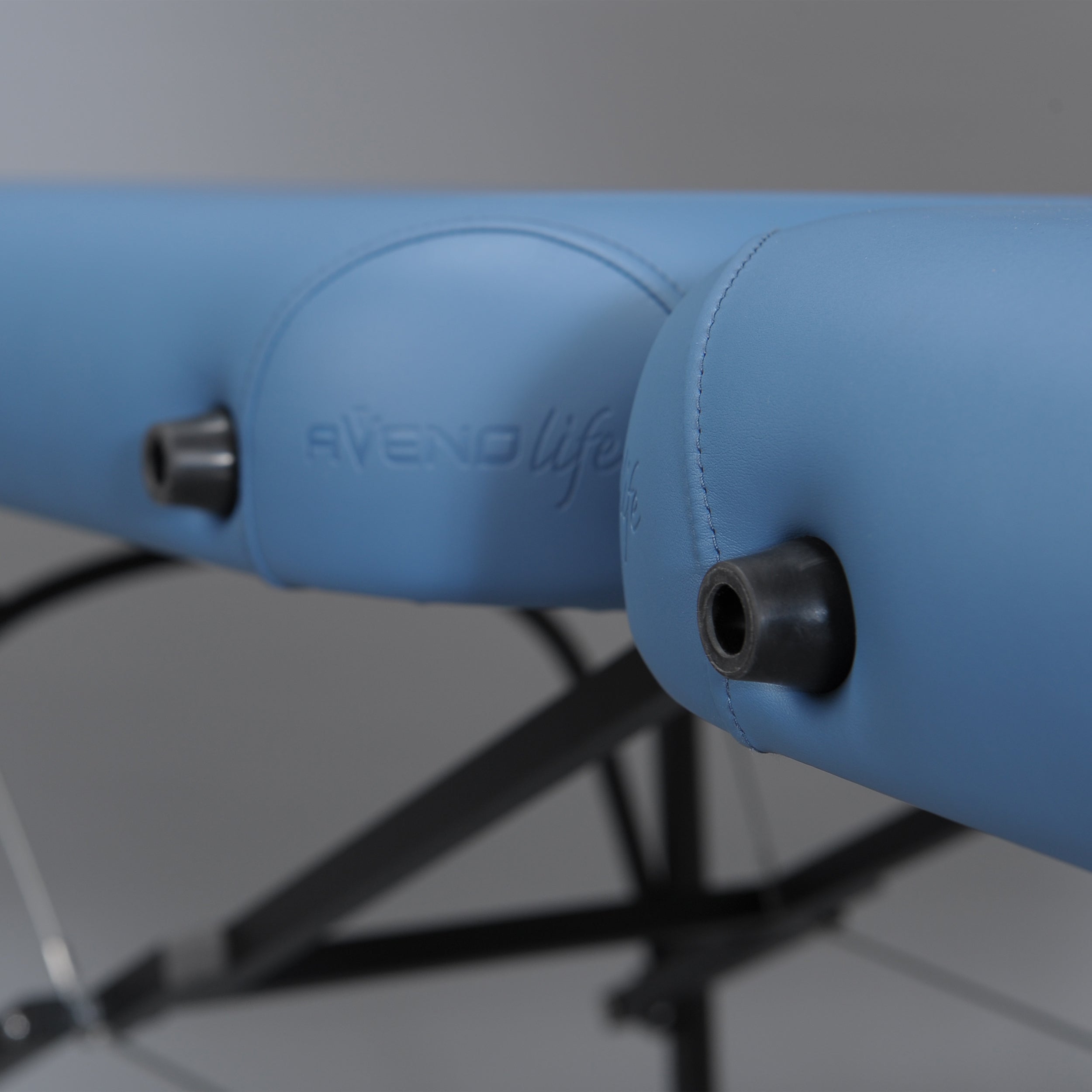 Rounded corners, facilitating the movement of the masseur around the table, with embossed Aveno Life logo.