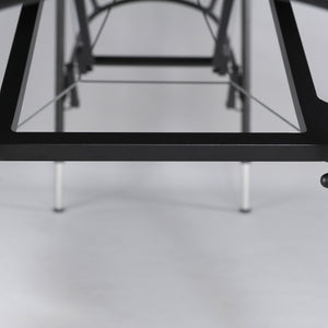 The unique tabletop construction, completely devoid of wooden elements, which contributes to the lower weight of the table, deserves special attention. This makes the Luba Light massage table comfortable to carry and transport. It is perfect for mobile massage services with home visits. The U-shaped profile of the aluminum legs ensures high stability and facilitates access to the patient. The Luna Light massage table has quick and easy height adjustment thanks to the special leg profile. The table is refined in every detail.