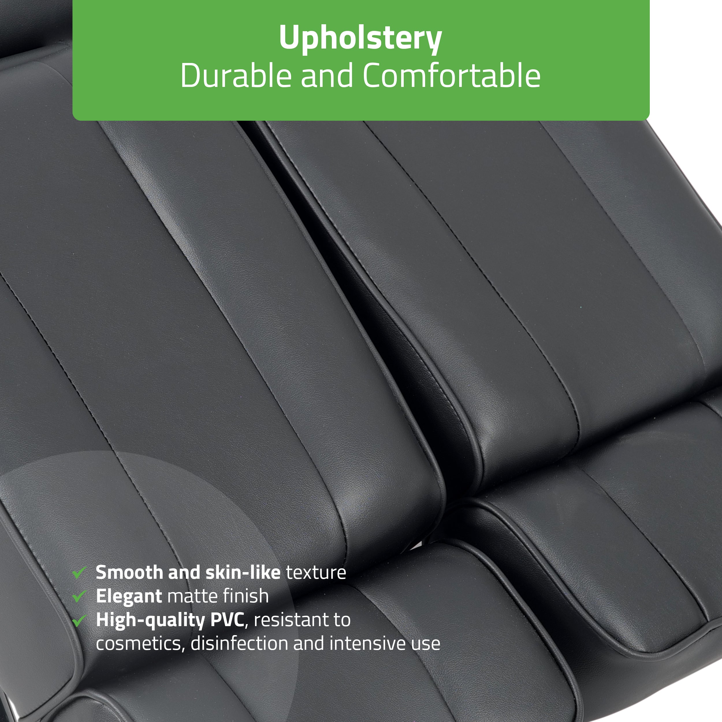Durable and elegant upholstery that feels like natural leather. Made of high-quality PVC – resistant to stains, oils, and disinfectants. The color remains vibrant for years. Tested and certified to meet Habys quality standards.