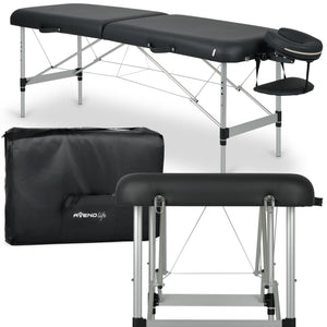 The Estetic Dark portable cosmetic bed is a two-section model that fits perfectly into any beauty salon, massage studio, spa, or tattoo parlor.