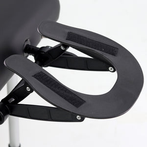 The table has a lightweight aluminum construction with an additional crossbar increasing stability during work. This makes it ideal for stationary use in massage and physiotherapy clinics, as well as for fieldwork.