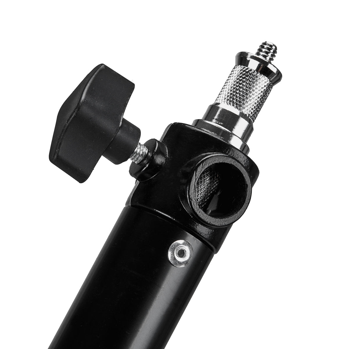 Das Teleskopdesign ermöglicht es Ihnen, die Länge des Arms im Bereich von 73 bis 131 cm einzustellen. Die Winkelverstellung des Stativs bietet eine große Bewegungsfreiheit in der Vertikalen und Horizontalen, so dass Sie die Beleuchtung präzise in die gewünschte Richtung lenken können. Der doppelseitige Stift wird in einem der drei Löcher montiert, so dass Sie die richtige Beleuchtungseinstellung für Ihre Bedürfnisse wählen können.