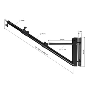 Die verstellbare Wandhalterung aus Stahl ist für Lampen und Lichtringe mit Gewinden von 6 mm und 9 mm Durchmesser ausgelegt. Ein stabiler Aufhänger ermöglicht es Ihnen, die Beleuchtung sorgfältig zu planen und fest über dem Arbeitsplatz zu befestigen.