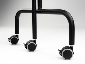 Screen made of steel coated with durable black powder paint. Special wheels with brakes allow for convenient movement and stabilization, even on slippery surfaces. The attractive colors of the screens mean that, in addition to functionality, the screens emphasize the modern character of the interiors. The black matte color of the screen's construction perfectly corresponds with the modern design of Agila stationary massage tables.
