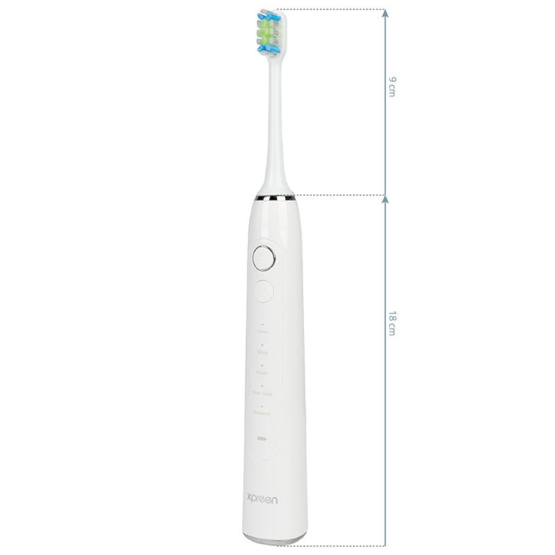 Die elektrische Zahnbürste Xpreen funktioniert mit Hilfe einer Ultraschall-Technologie. Ein innovativer bürstenloser Motor reinigt die Zähne in einer Geschwindigkeit von bis zu 38000 Zahnbürsten-Bewegungen pro Minute. Energische Bewegungen lassen die Flüssigkeit tief in die schmalen Zwischenräume der Zähne und entlang der Zahnfleischlinie eindringen. Dies reinigt Plaque 10 Mal besser als eine gewöhnliche Zahnbürste.