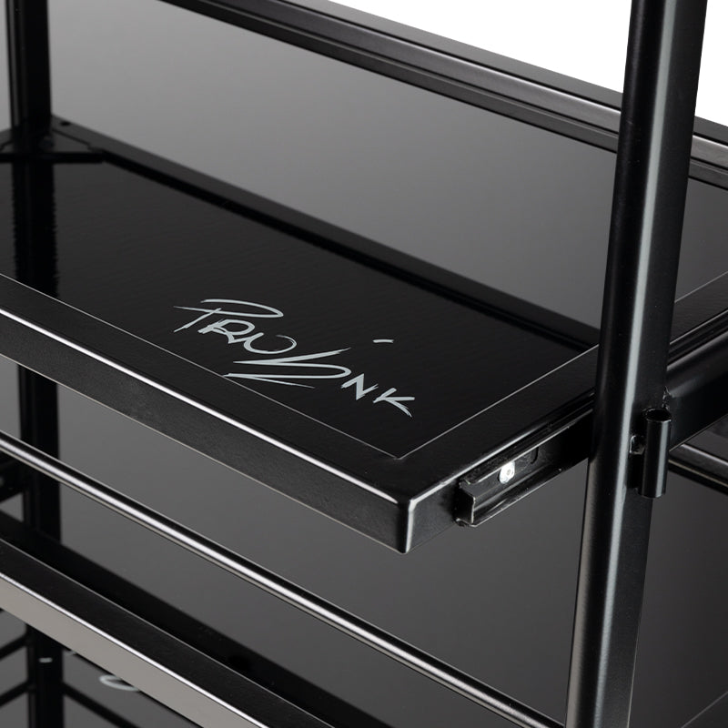 pomoćnik pro ink 1015 za pohranu opreme za tetoviranje. zahvaljujući čvrstoj čeličnoj konstrukciji, jamči dug vijek trajanja. čak četiri staklene police će primiti sve što vam je potrebno tijekom sesije. ima držač za lampu.