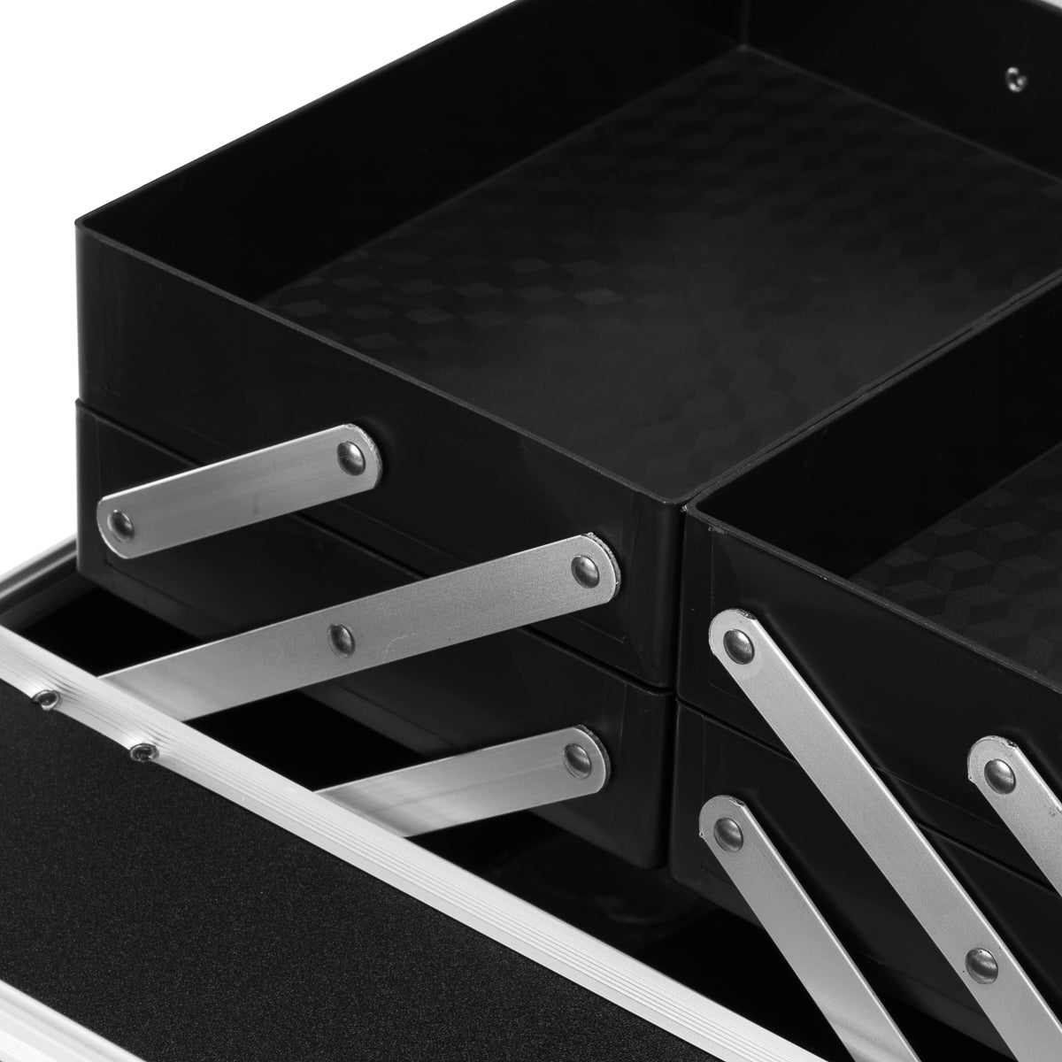 Elegantna kozmetička torba 44 kombinacija je funkcionalnosti i stila, osiguravajući praktičnu organizaciju, sigurno skladištenje i brz pristup osnovnim alatima. Savršena je za svakodnevnu upotrebu, posebno za mobilne stiliste. Prostrana unutrašnjost s policama na izvlačenje omogućuje vam organiziranje dodataka, a prostrana komora će držati bušilicu za nokte, preparate ili druge potrebne alate.