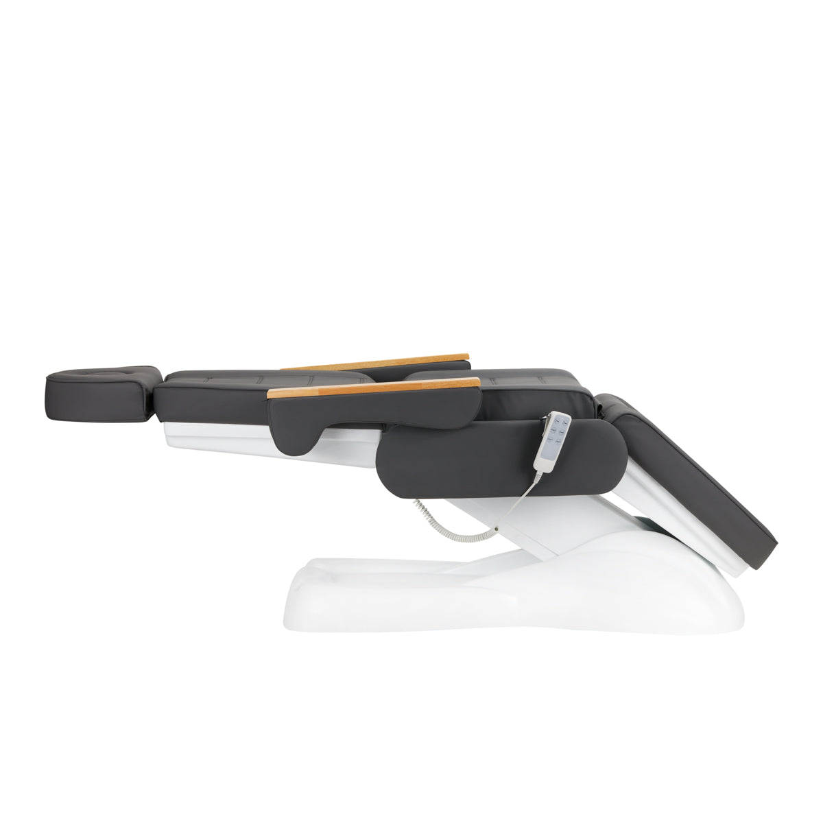 Koristeći intuitivni daljinski upravljač, stolica se može glatko podesiti u tri ravnine – ima podesivu visinu i kutove naslona i oslonca za noge. To vam omogućuje slobodno postavljanje položaja prema postupku koji se trenutno izvodi, što utječe na udobnost i korisnika i praktičara.
