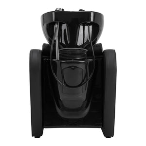 Dubina keramičke posude umivaonika u nijansama crne omogućuje udobno i učinkovito obavljanje širokog spektra frizerskih usluga, sprječavajući prekomjerno prskanje vode i proizvoda korištenih tijekom tretmana. Korišteni materijal čini umivaonik izdržljivim, otpornim na promjenu boje i ogrebotine, te vrlo jednostavnim za održavanje čistoće. Odgovarajuće profilirani ovratnik i nagnuti naslon za leđa pružaju potporu i udobnost tijekom pranja kose, a zahvaljujući udobnom plastičnom prekrivaču u nijansama crne, klijent neće osjetiti nelagodu od hladne keramičke površine.