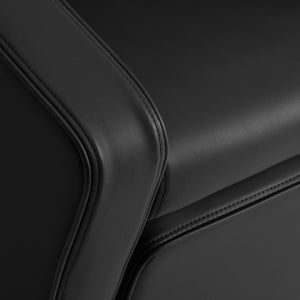 Gabbiano Emma frizerska praonica dizajnirana je kako bi osigurala udobno obavljanje tretmana njege i bojenja i pružila klijentu udoban položaj tijekom dugih postupaka. Naslon za leđa postavljen pod optimalnim kutom potiče izvrsnu potporu kralježnici. Odgovarajuće profilirano sjedalo ispunjeno izdržljivom pjenom pruža visoku udobnost korištenja, a tapecirani nasloni za ruke osiguravaju pravilno pozicioniranje ramena klijenta. Presvlaka od sintetičke kože u nijansama crne jamči dugotrajnu izdržljivost i lakoću čišćenja. Tanak dizajn praonice savršeno se uklapa u elegantne interijere frizerskih salona. Set uključuje kompletnu armaturu u nijansama crne i kroma, uključujući slavinu, tuš glavu i namjenska crijeva kako bi pružio potpuni set radnih alata.