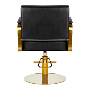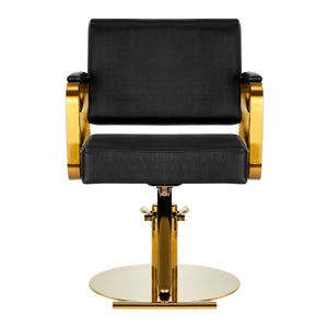 Elegantna frizerska stolica Gabbiano Genua značajno olakšava izvođenje raznih tretmana. Izdržljiva hidraulična pumpa osigurava visoku udobnost korištenja. Klasične boje, jednostavan oslonac za noge i dekorativni polirani elementi u nijansama zlata daju joj ukusan izgled.