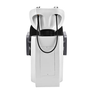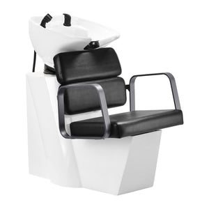 Odgovarajuća dubina bijele keramičke posude umivaonika sprječava prekomjerno prskanje vode ili proizvoda koji se koriste tijekom tretmana. To omogućuje udobno i učinkovito obavljanje širokog spektra usluga. Kut posude može se podesiti, što olakšava prilagodbu individualnim potrebama. Visoka kvaliteta korištenih materijala čini umivaonik izdržljivim, otpornim na promjenu boje i ogrebotine, te vrlo jednostavnim za čišćenje. Pravilno profilirani ovratnik i nagnuti naslon za leđa pružaju potporu i udobnost prilikom pranja kose, a zahvaljujući udobnom crnom plastičnom prekrivaču, kupac neće osjetiti neugodnost hladne keramičke površine.