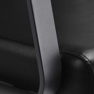 Profilirana stolica pruža odgovarajuću lumbalnu potporu i, stoga, visoku udobnost korištenja. Metalni nasloni za ruke u nijansama sive s geometrijskim oblikom omogućuju pravilno pozicioniranje ramena kupca. Punjenje izdržljivom pjenom otpornom na deformacije i presvlake od sintetičke kože ugodne na dodir u nijansama crne osiguravaju trajnost namještaja, lakoću čišćenja i udobno korištenje tijekom dugog vremena. Originalan, elegantan izgled šamponijere daje interijeru jedinstven izraz. Set uključuje kompletnu armaturu u nijansama crne, uključujući slavinu, tuš glavu i namjenska crijeva kako bi se osigurao kompletan set alata za rad.