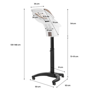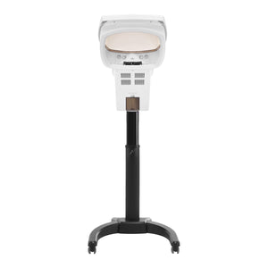Bijelo plastično kućište čini uređaj izdržljivim i lakim za održavanje čistoće. Otvarajući kupola značajno poboljšava čišćenje proizvoda. Stalak s jednostavnim, ručnim podešavanjem u rasponu od 18 cm opremljen je bazom s praktičnim kotačima, što omogućuje jednostavno premještanje uređaja u bilo kojem trenutku.