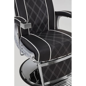 Borg barber chair The BORG chair is a unique blend of classic elegance and modern design – perfect for both stylized and minimalist barbershop interiors. Its carefully contoured backrest and wide seat ensure high comfort, even during longer treatments. Black upholstery