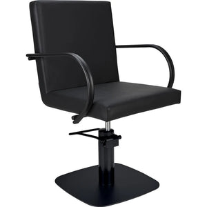 The PIK styling chair is the perfect choice for lovers of clean, modern design. Its simple, understated silhouette pairs beautifully with industrial, loft, and Scandinavian interiors. The matte black metal armrests coordinate effortlessly with raw finishes, creating a cohesive and stylish salon environment. Compact but professional, PIK is a favourite among stylists. Black upholstery