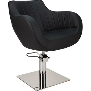THOMAS is one of our bestsellers, loved for its bold shape, generous seat, and wide armrests. Its ergonomic construction delivers outstanding comfort for both clients and stylists. This is a chair that combines modern form with long-term durability. Available also with elegant vertical stitching that gives it a lighter, more refined look Black upholstery