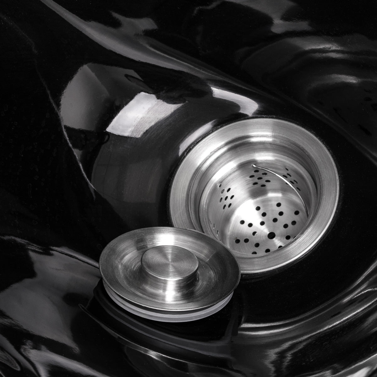 The washbasin is fitted with a mixer tap, providing constant access to hot and cold water and the ability to adjust the temperature to suit the customer’s needs. A practical place to store the shower head improves the organisation of the workstation, while a plug with a built-in strainer allows for control of water flow and maintains a high standard of hygiene. The water connection is located inside the base, allowing the plumbing to be neatly concealed. The combination of functional solutions with ergonomic details ensures that daily work proceeds smoothly and comfortably.