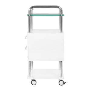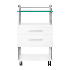 Visokokvalitetni pomoćnik za pedikuru je funkcionalni kozmetički komad namještaja na kotačima. Zahvaljujući svojoj mobilnosti, možete ga prevesti u druge sobe za tretmane. Pomoćnik ima staklenu radnu ploču, dvije ladice za alate, pribor i policu za glodalicu za pedikuru ili drugi uređaj.